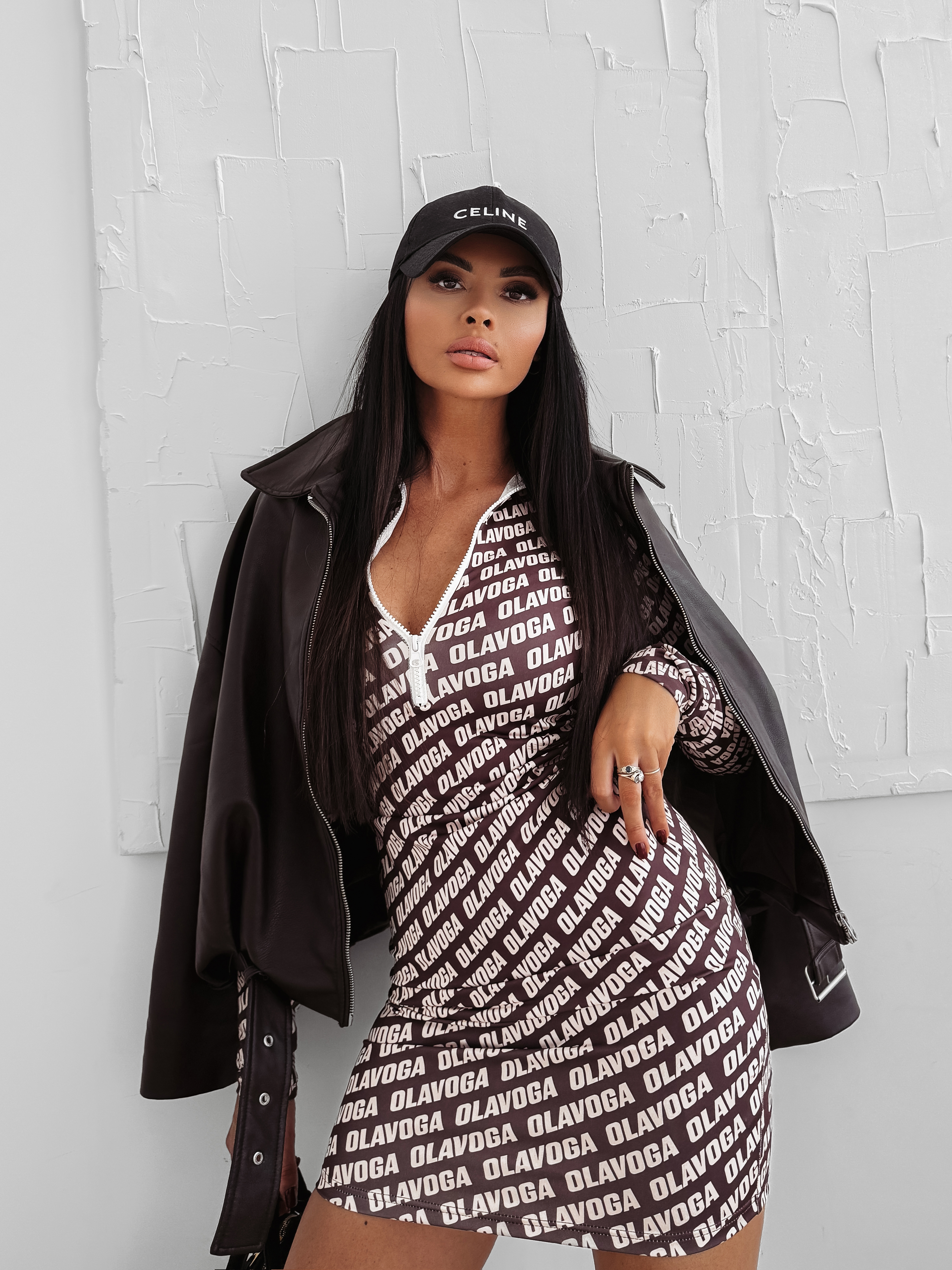 Idealnie dopasowana sukienka. Wykonana z wysokiej jakości elastycznego materiału. Całość zdobi charakterystyczny nadruk z logo marki OLAVOGA. Z przodu – praktyczny suwak, który pozwala regulować głębokość dekoltu.