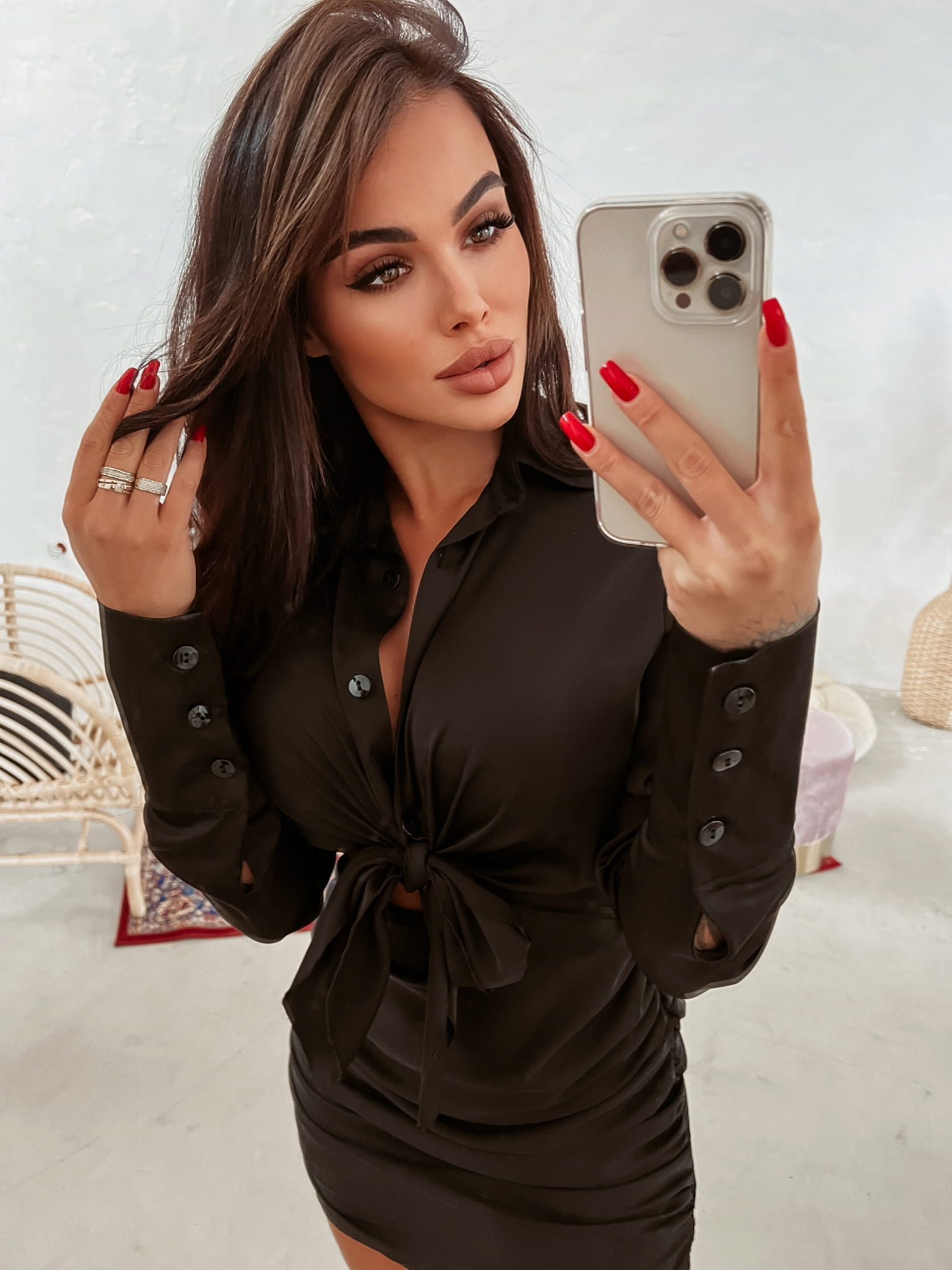 Szukasz szykownej stylizacji na wyjście? Sukienka EVENING SATIN wykonana z eleganckiej satyny będzie idealnym wyborem. Zmysłowe wycięcie i wiązanie na przodzie optycznie wysmukli talię, a jej krój doda Twojej stylizacji klasy.