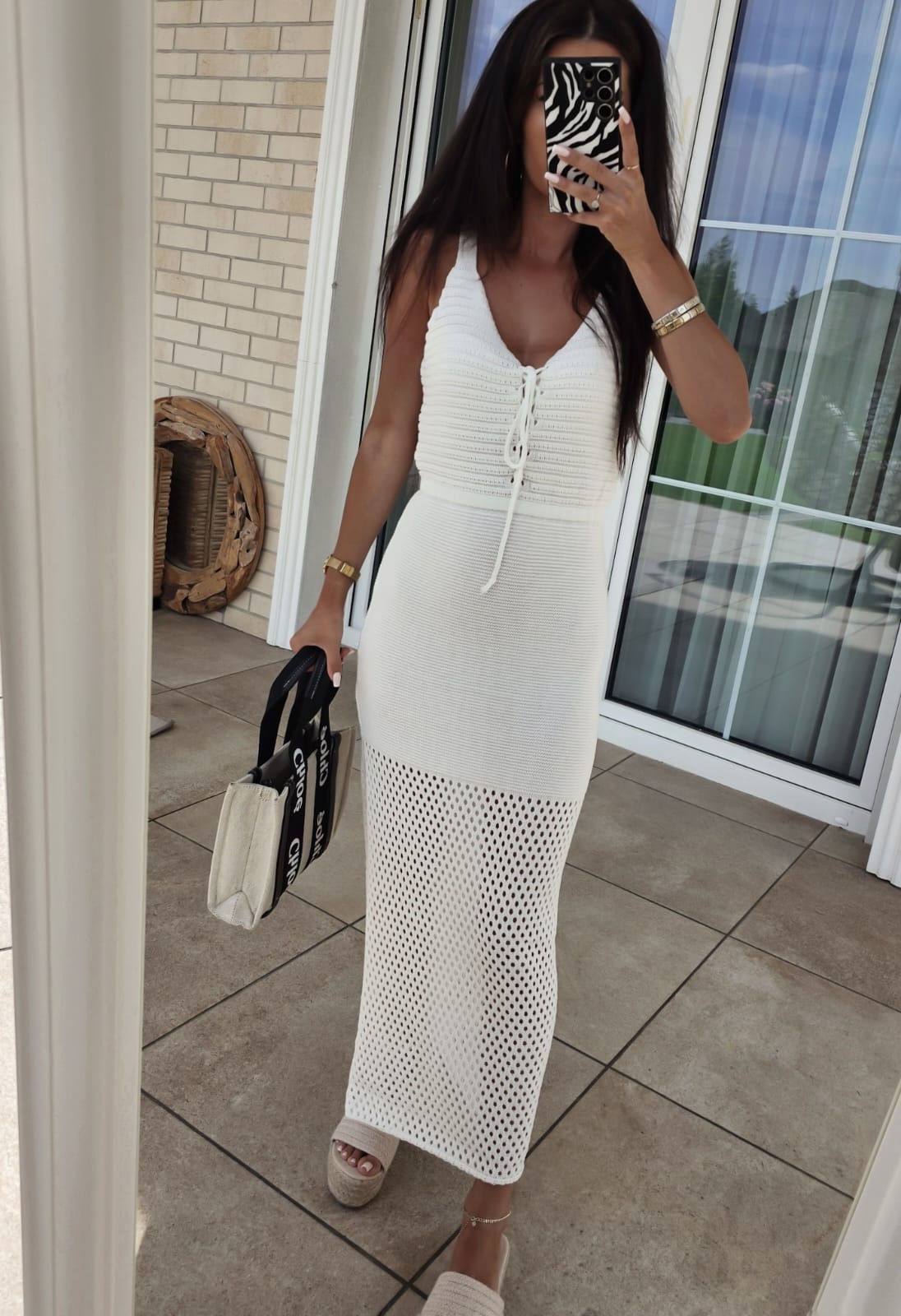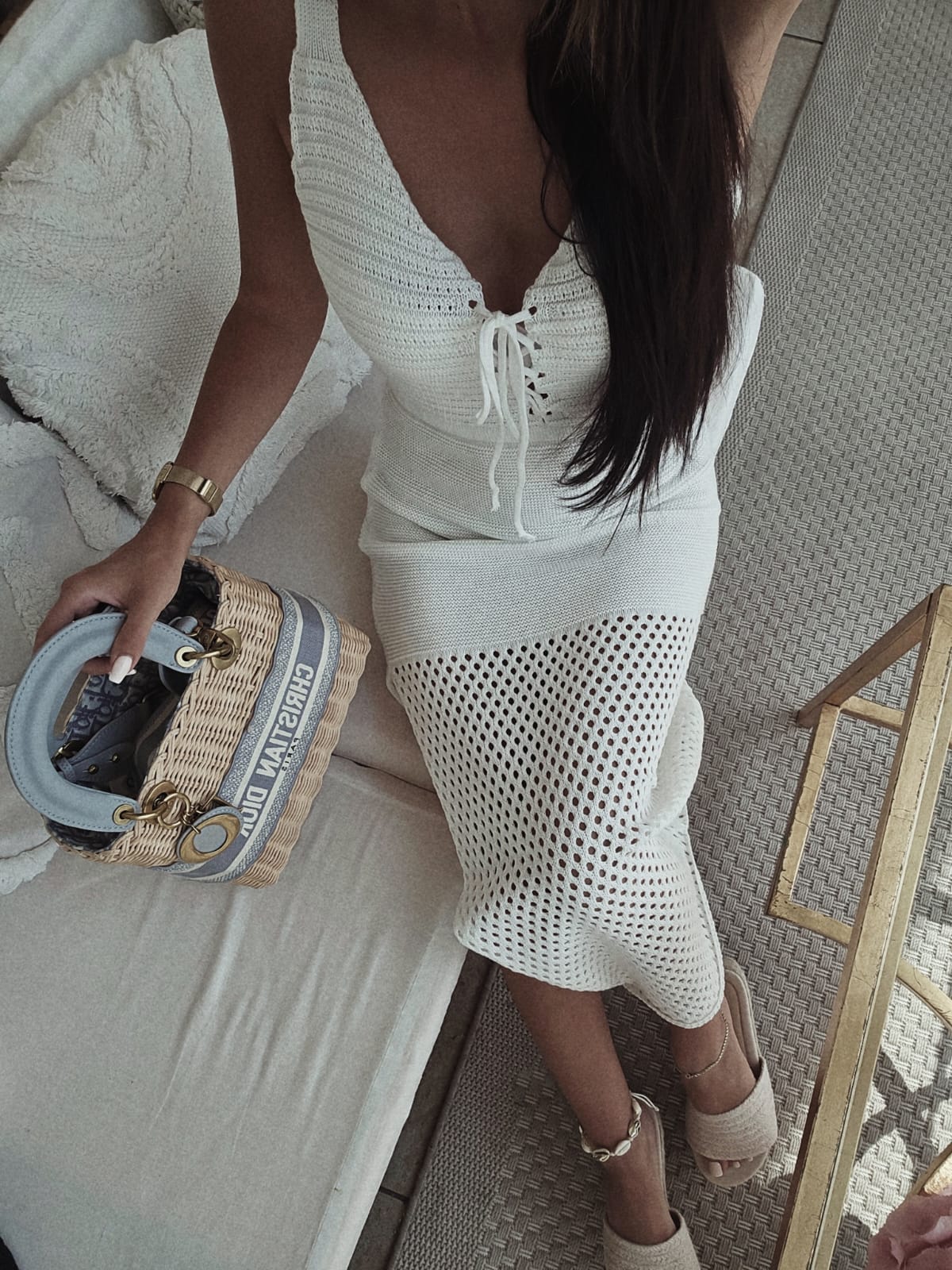 Sukienka FIRA to urocza dzianinowa sukienka, dzięki której z łatwością stworzysz wakacyjną stylizację. Odcinana góra na szerokich ramiączkach. Pod biustem wygodna, dopasowująca się do sylwetki gumka. Sznurowanie na wysokości biustu.