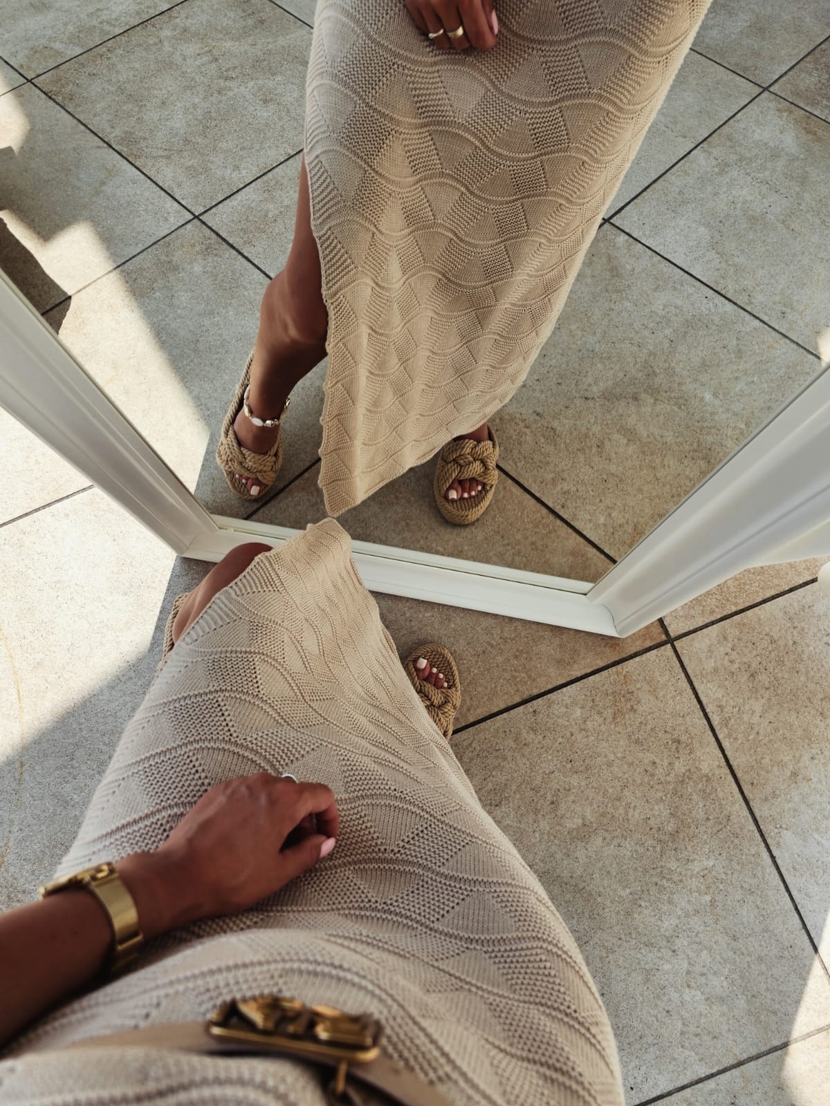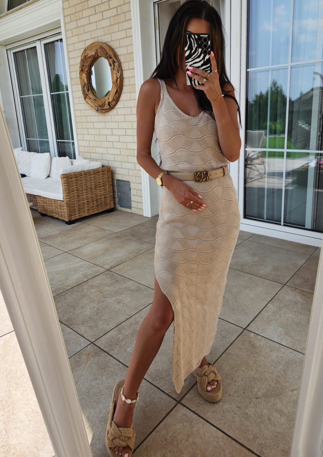 Sukienka MAROKO na ramiączka, z rozcięciem z boku. klasyczna , prosta w pięknym splocie.