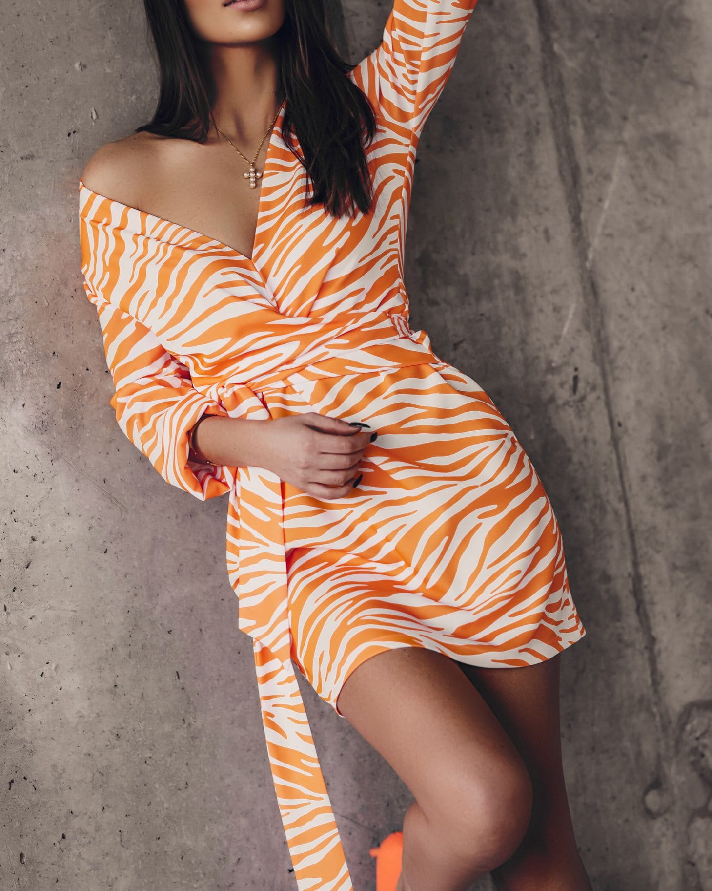 SUKIENKA STRONG PRINT BIAŁY+NEON POMARAŃCZ