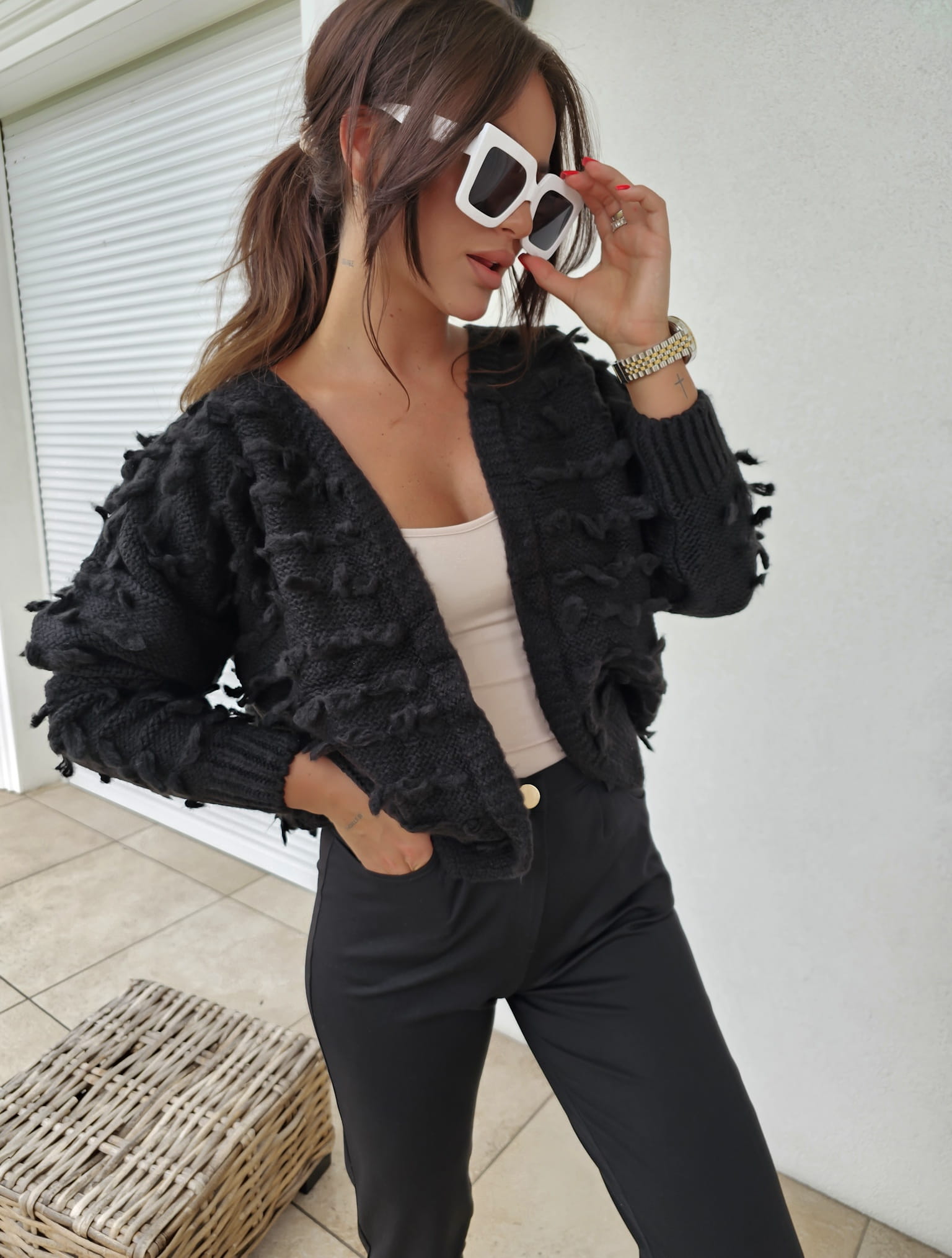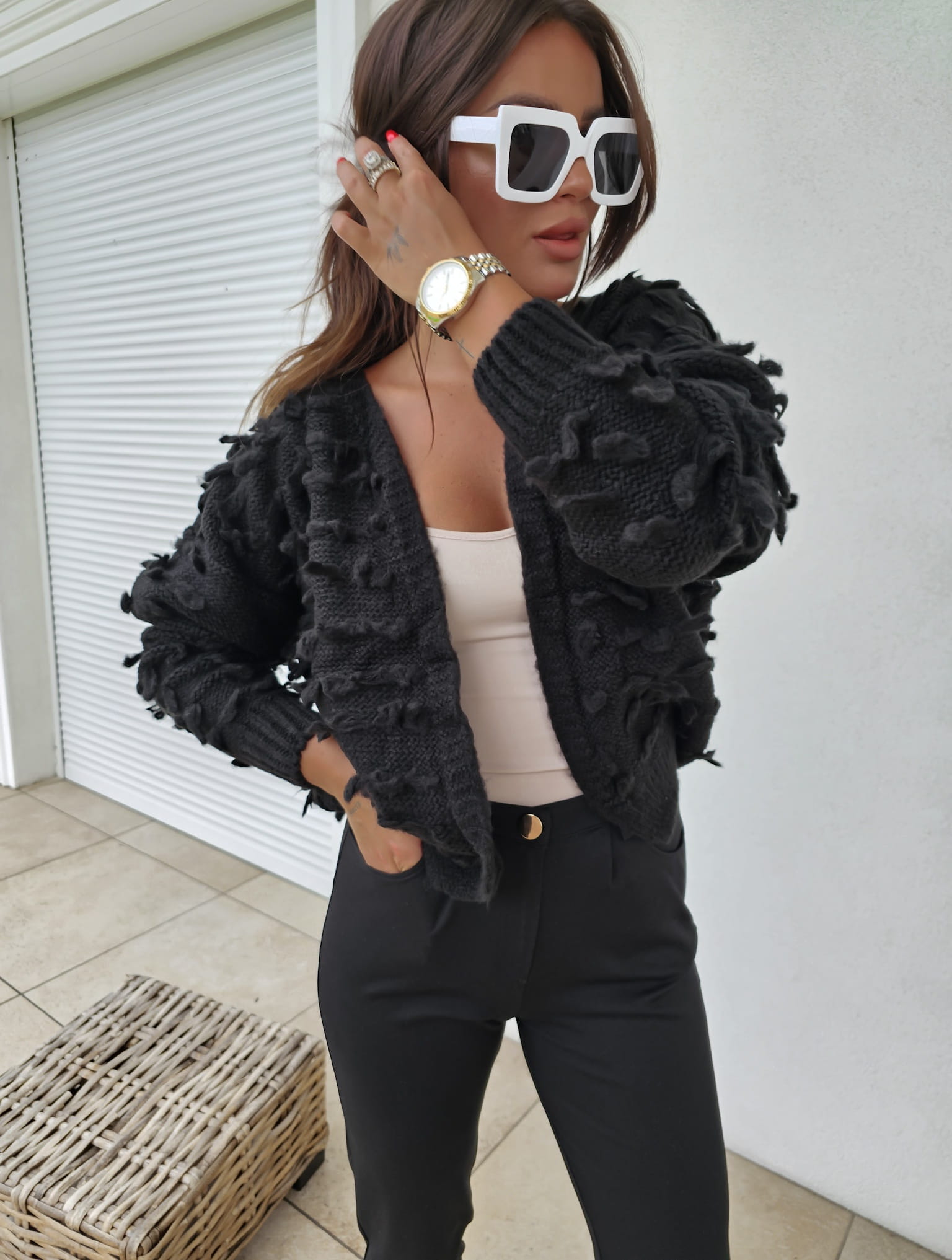 Sweter LIZZY wykonany z przemiłej przędzy. Uroku dodają frędzle.