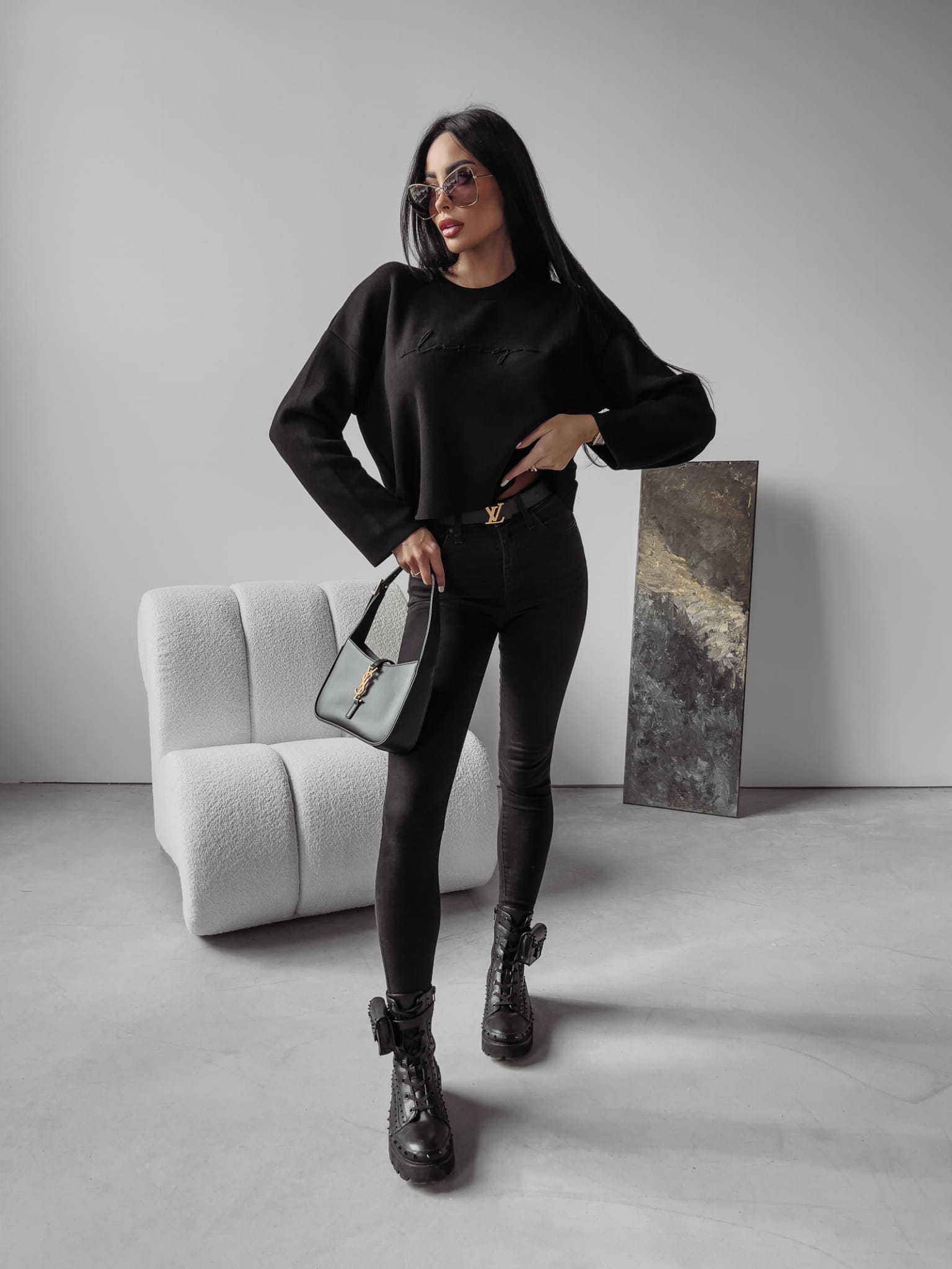 Gładki, klasyczny sweter o pudełkowym kroju, z eleganckim haftem marki na przodzie. Delikatnie rozszerzane rękawy, wysokogatunkowa dzianina swetrowa.
