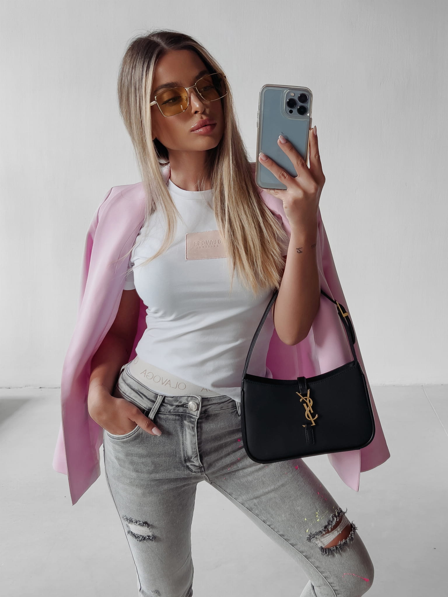 Dopasowana koszulka w jednolitym kolorze, o kroju slim fit. Niewielki dekolt i krótki rękaw. Na przodzie skórzana naszywka z logo OLAVOGA. Basic do stworzenia wakacyjnej stylizacji.