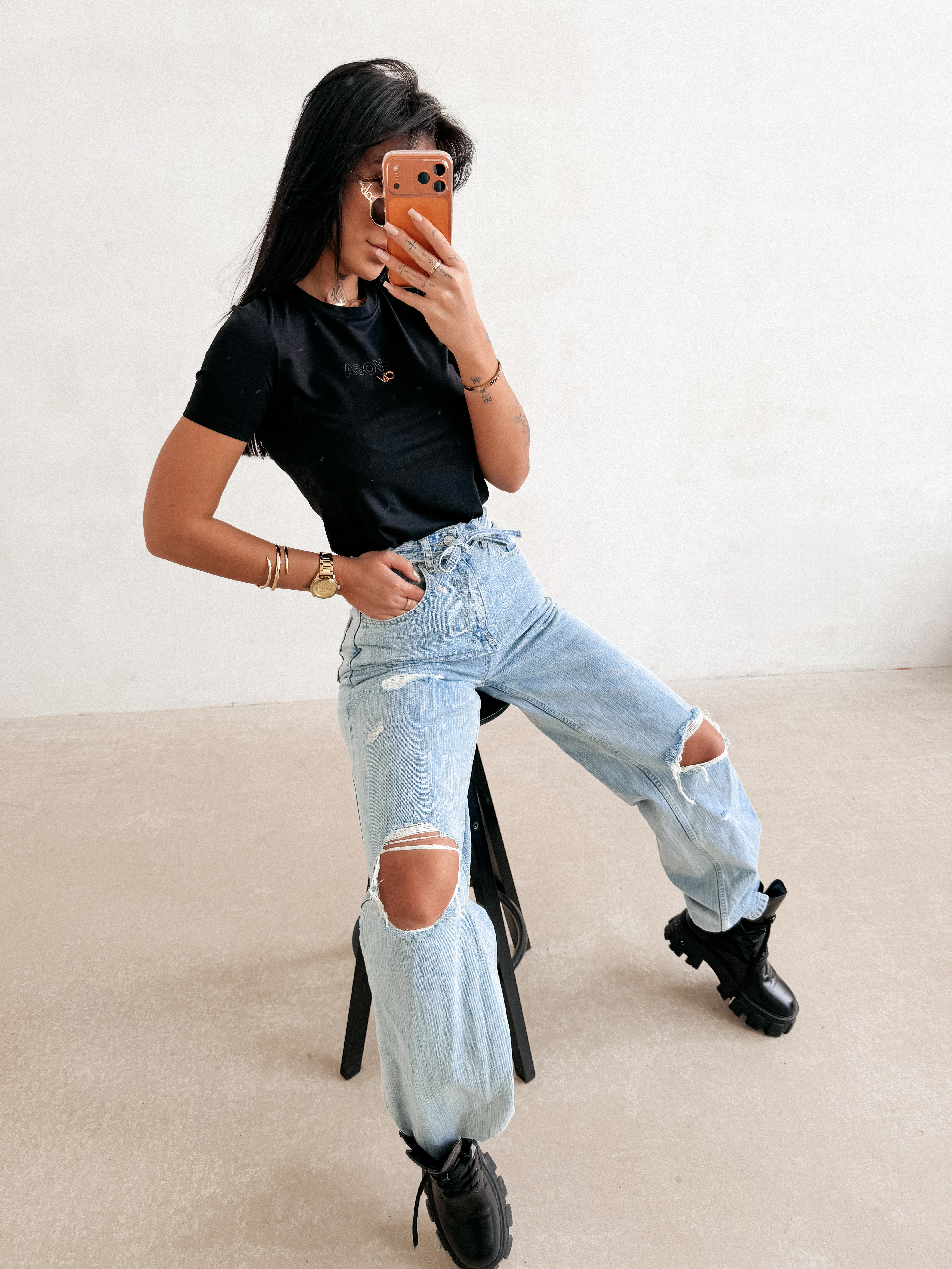 Idealnie dopasowany t-shirt o prostym kroju. Wykonany z wysokiej jakości, elastycznego materiału o gładkiej, miękkiej strukturze z domieszką wiskozy. Klasyczny krój z krótkim rękawem. Na przodzie delikatne, tłoczone logo marki OLAVOGA uzupełnione metalicznym detalem.
