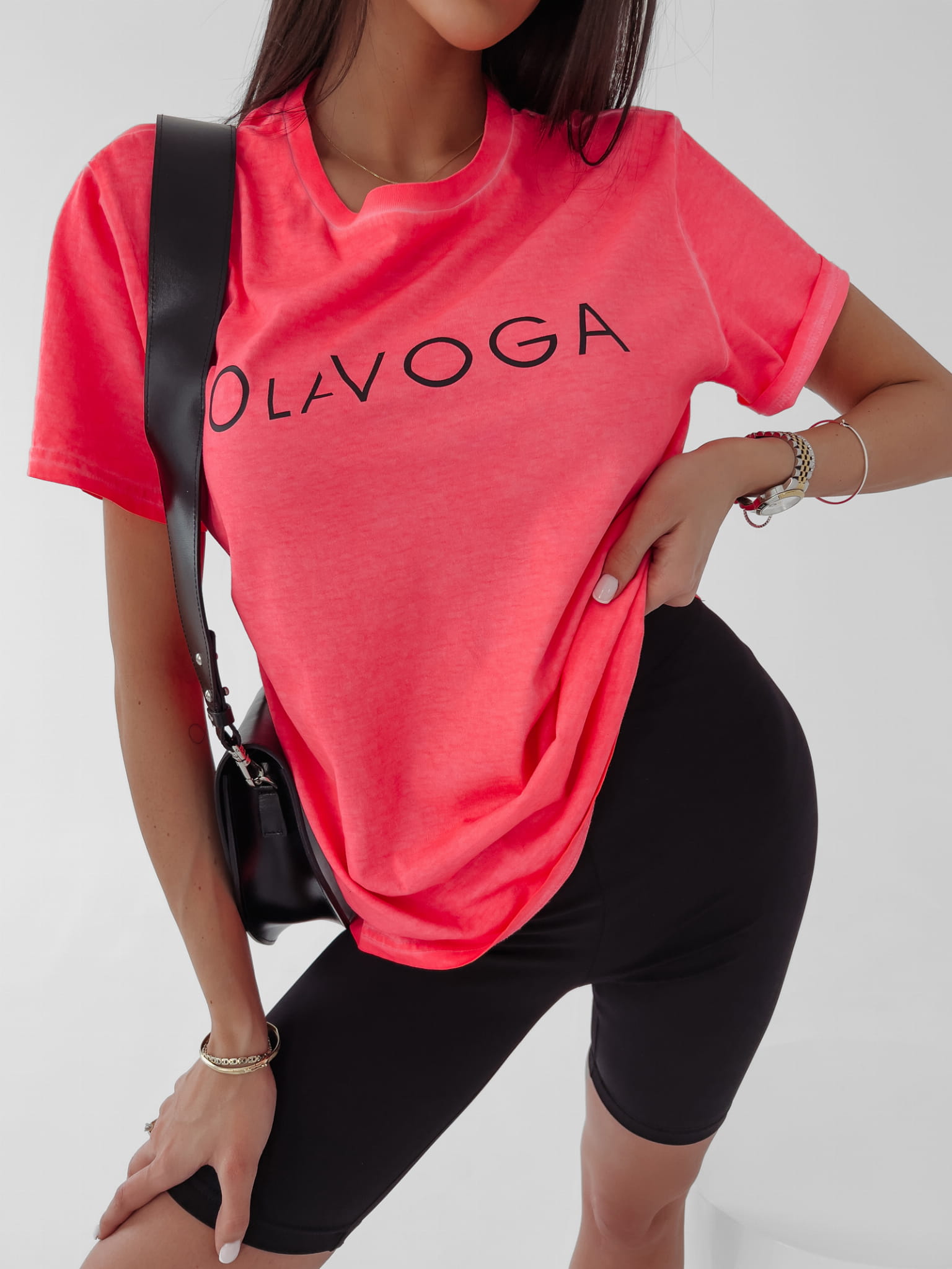 Klasyczny, bawełniany T- shirt z delikatnym efektem sprania. Mocny, wyrazisty kolor fluo dodaje pazura stylizacji. Na przodzie nadruk logo OLAVOGA. T- shirt idealnie współgra z szortami czy ulubionymi jeansami.