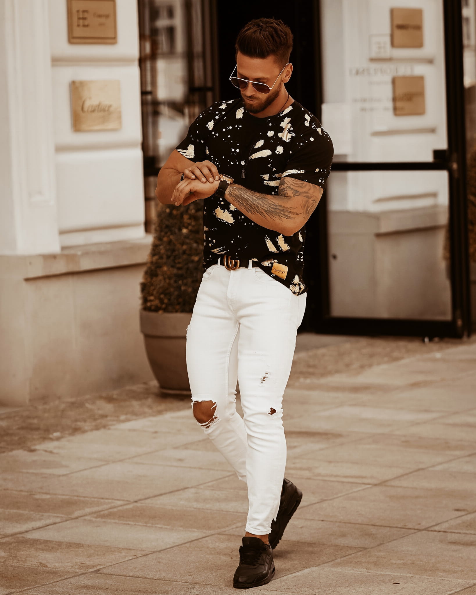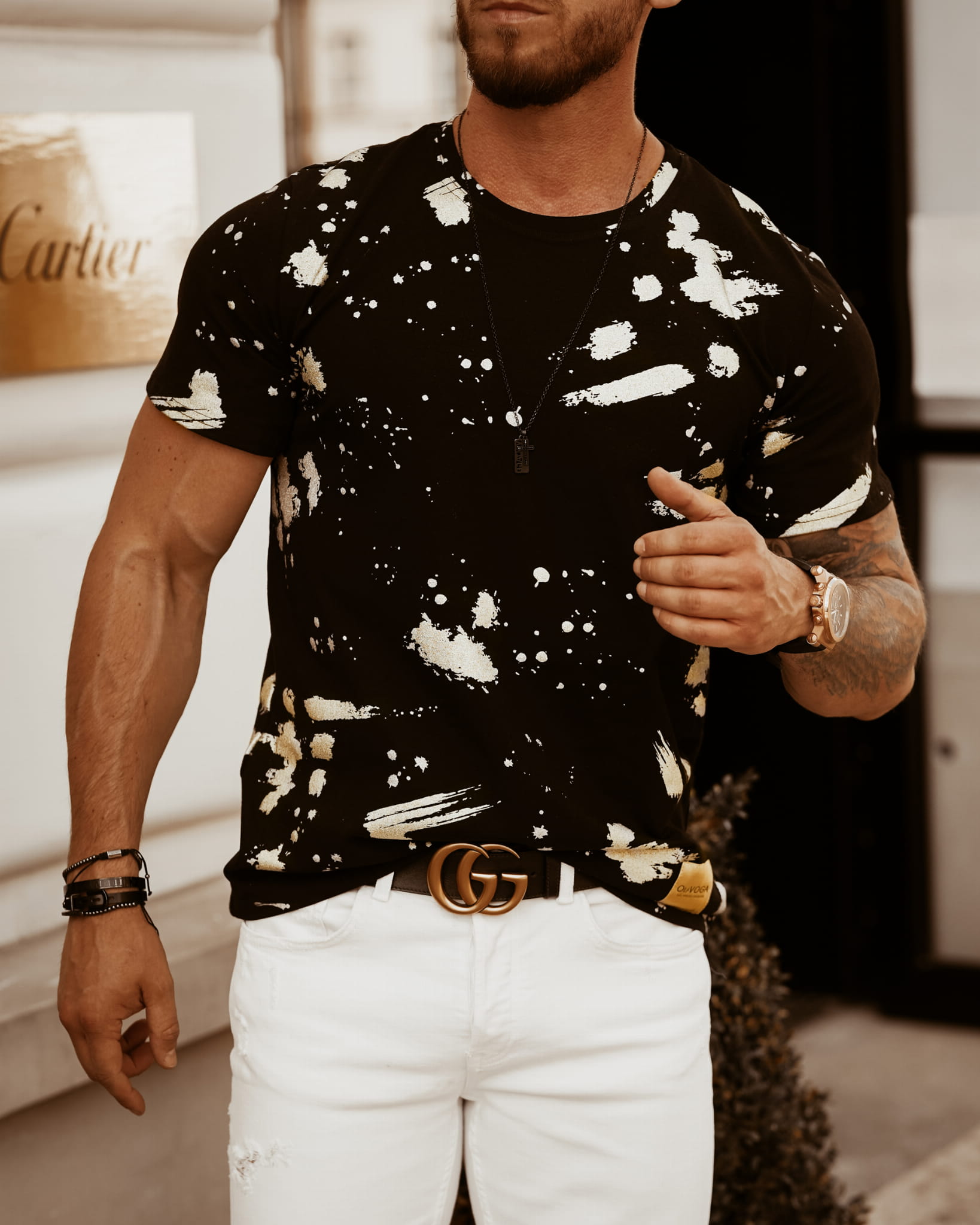 T-SHIRT MĘSKI COLOR SPLASH CZARNO ZŁOTY