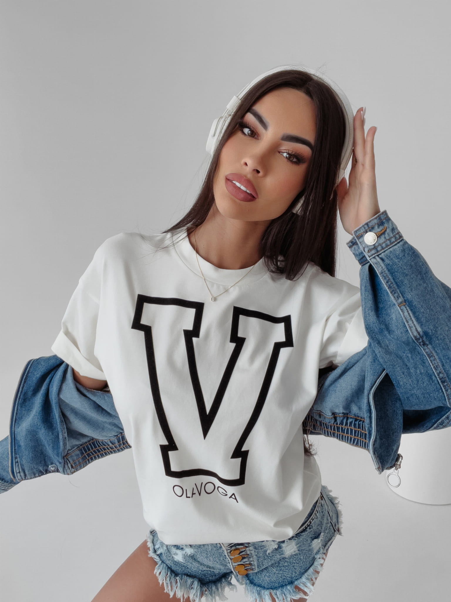 Klasyczny, prosty T- shirt z dużym nadrukiem V na przodzie. Fason o pudełkowym kroju, z lekko obniżoną linią ramion. Uszyty z grubej, mięsistej bawełny. Idealny do szortów.