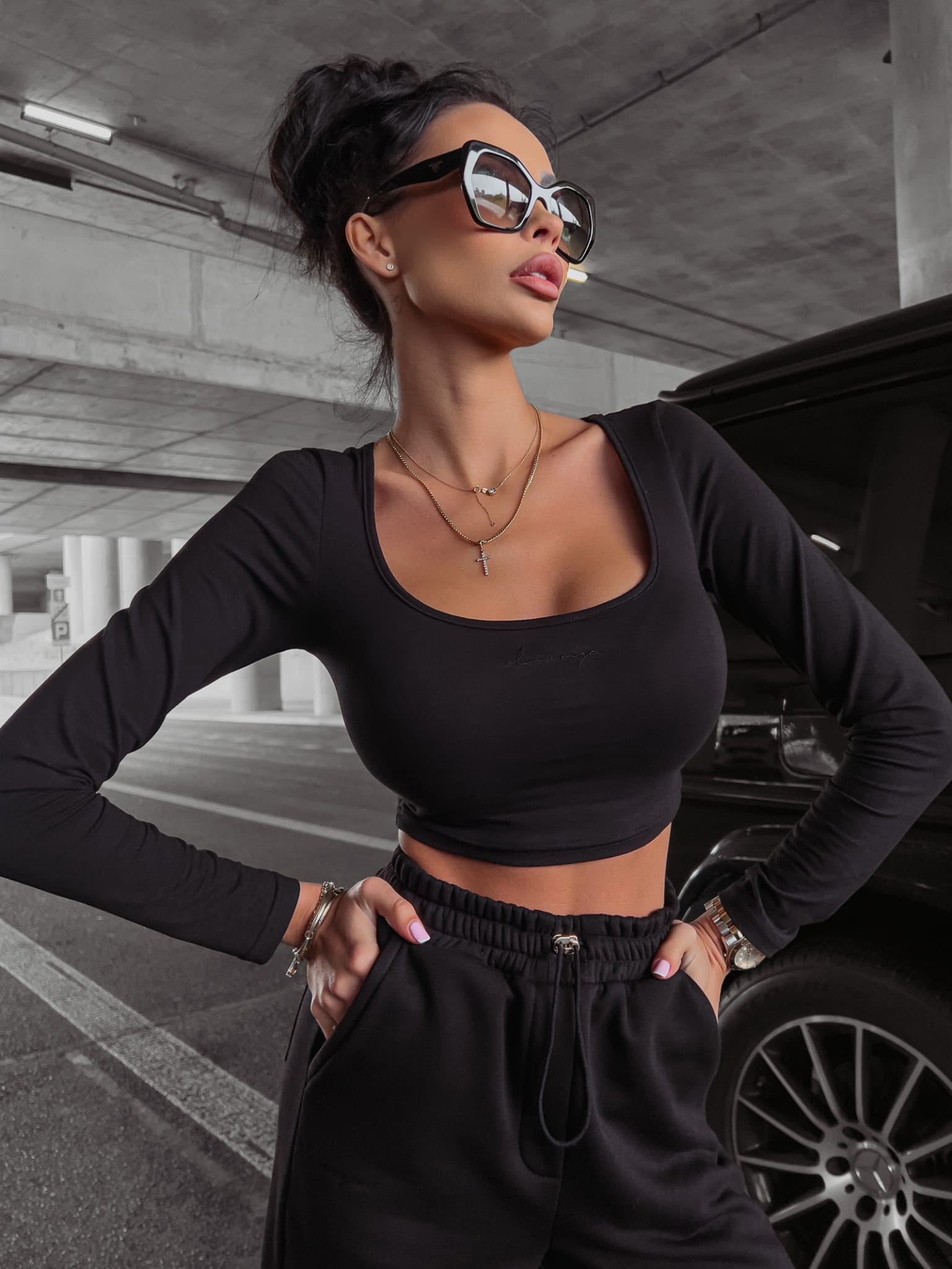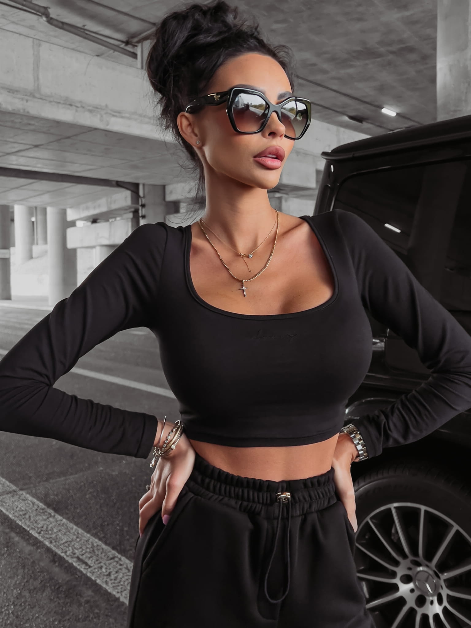 Krótki, gładki top z minimalistycznym haftem OLAVOGA na przodzie. Uszyty z najwyższej jakości bawełny. Okrągły dekolt, długi rękaw. Basic do stworzenia wielu stylizacji.