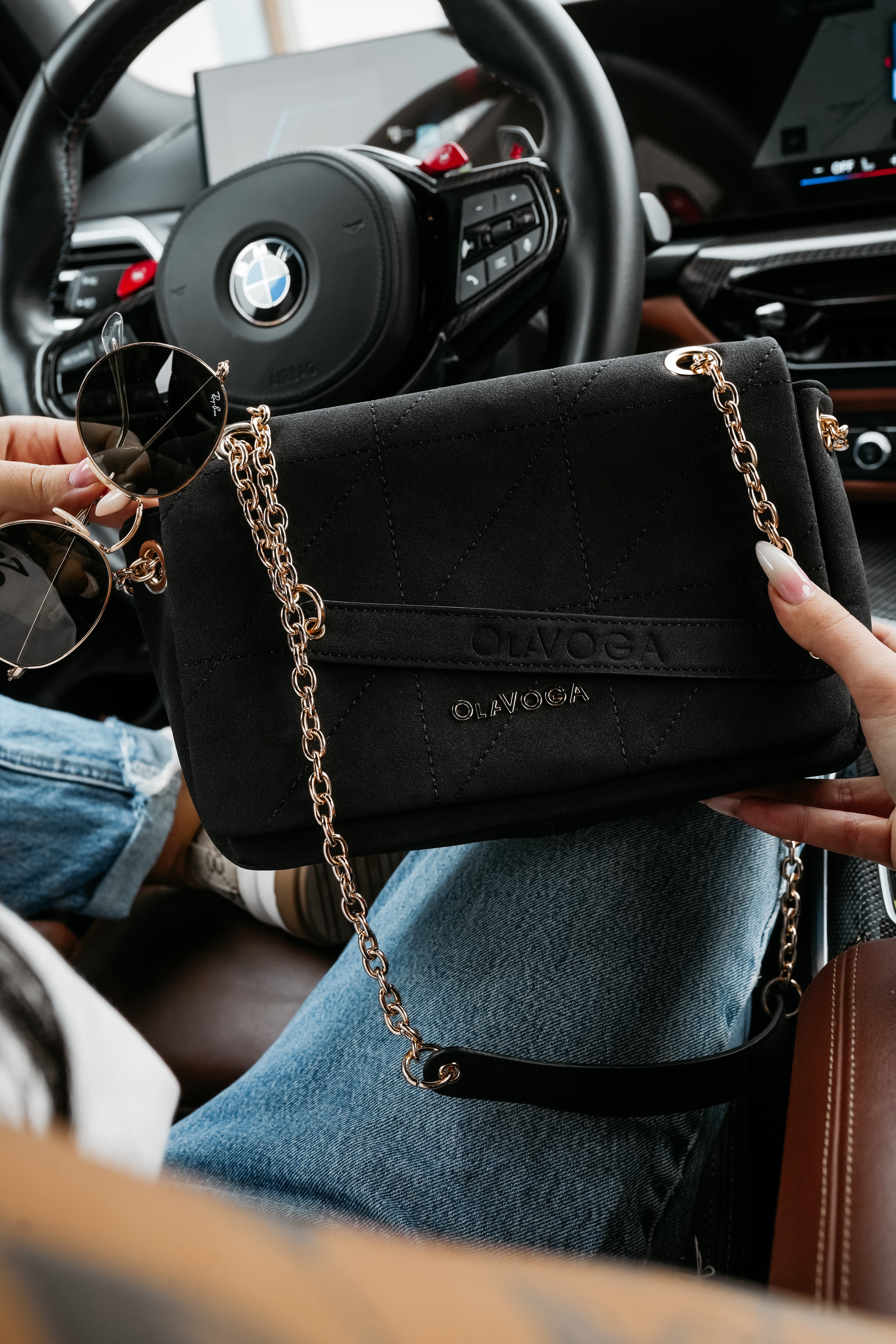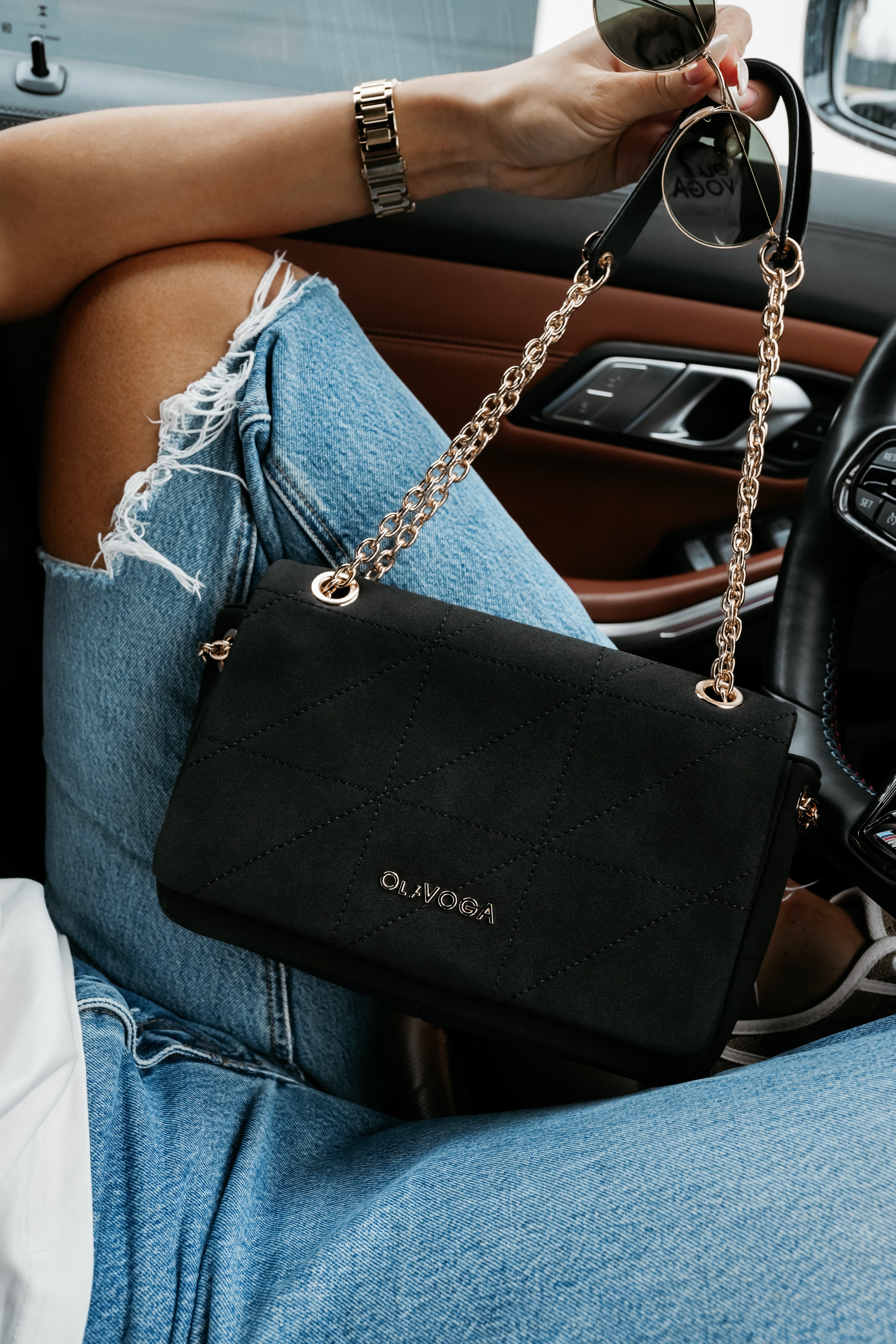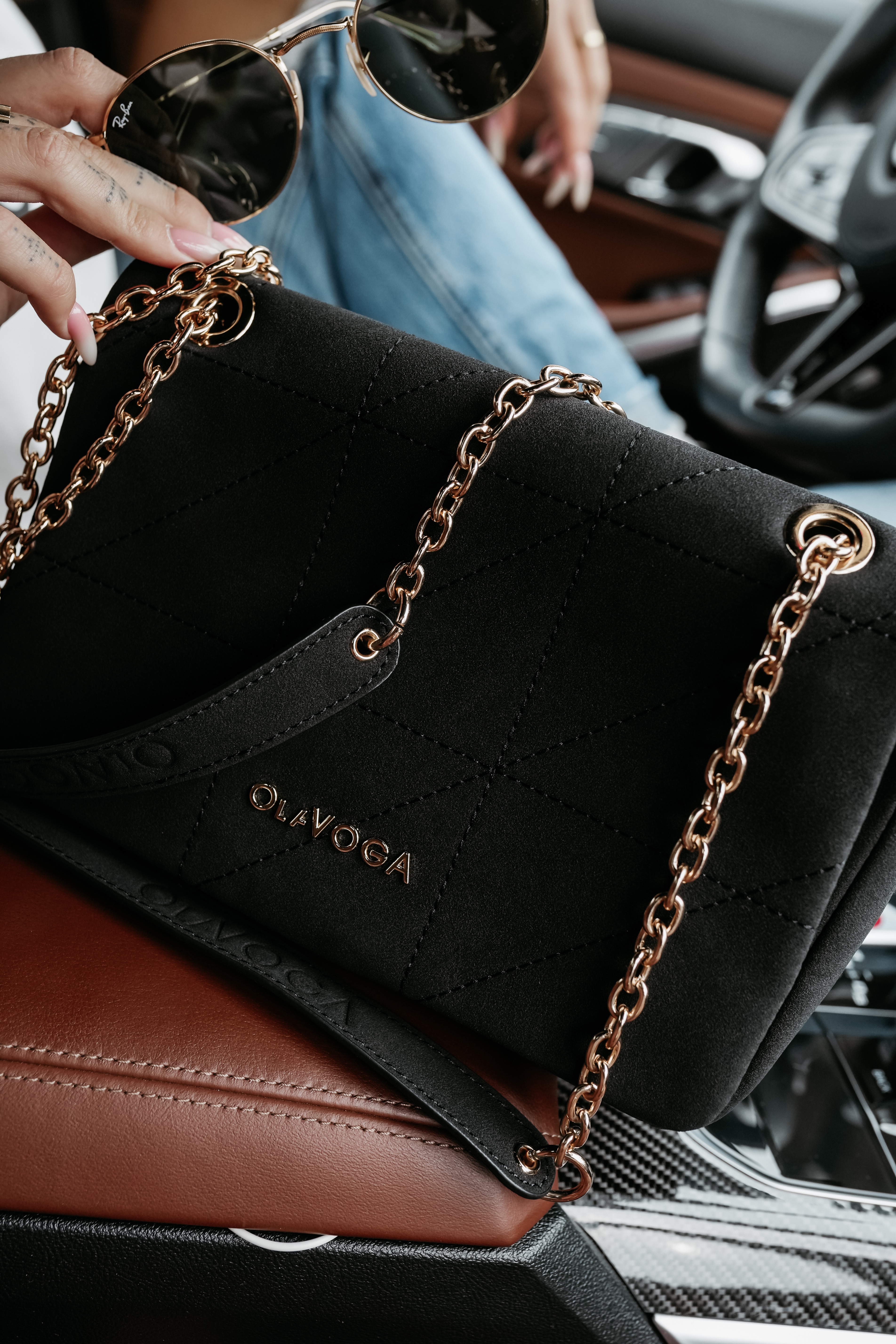 Shoulder bag - pikowana tkanina - usztywniony model z klapą - złoty metalowy łańcuszek - na rączce wytłoczone logo OLAVOGA - detal z metalowym złotym logo na przodzie - magnetyczne zapięcie