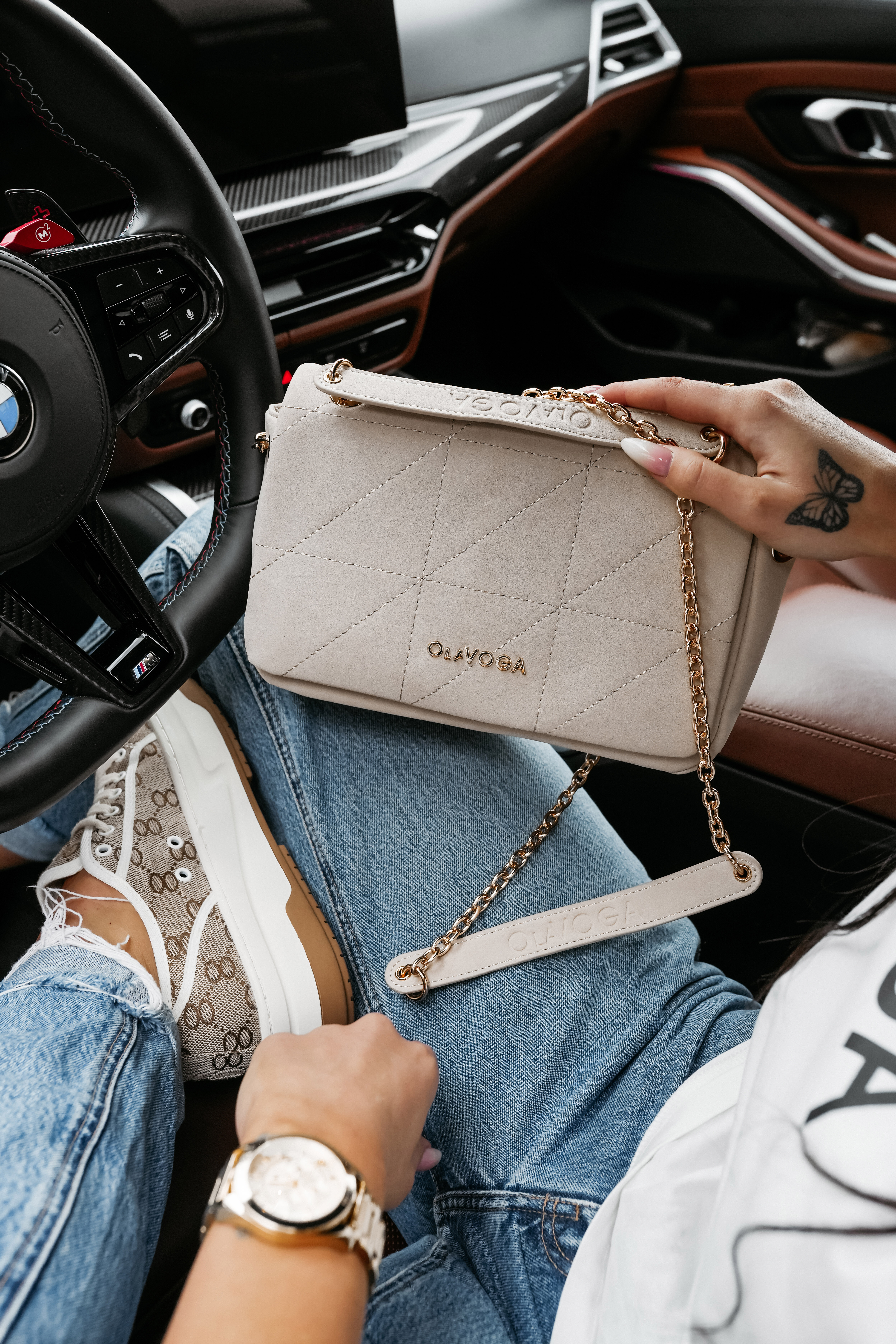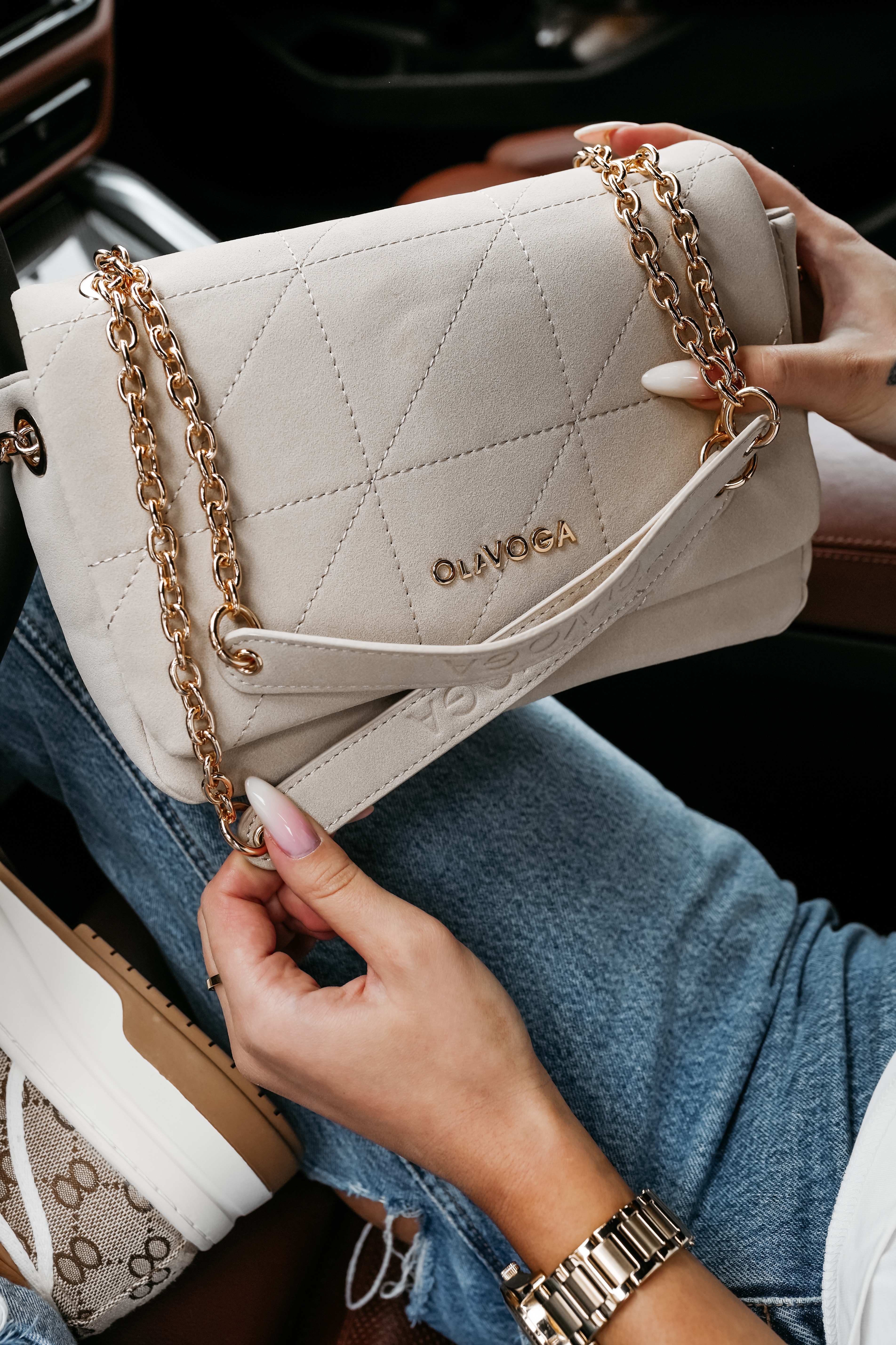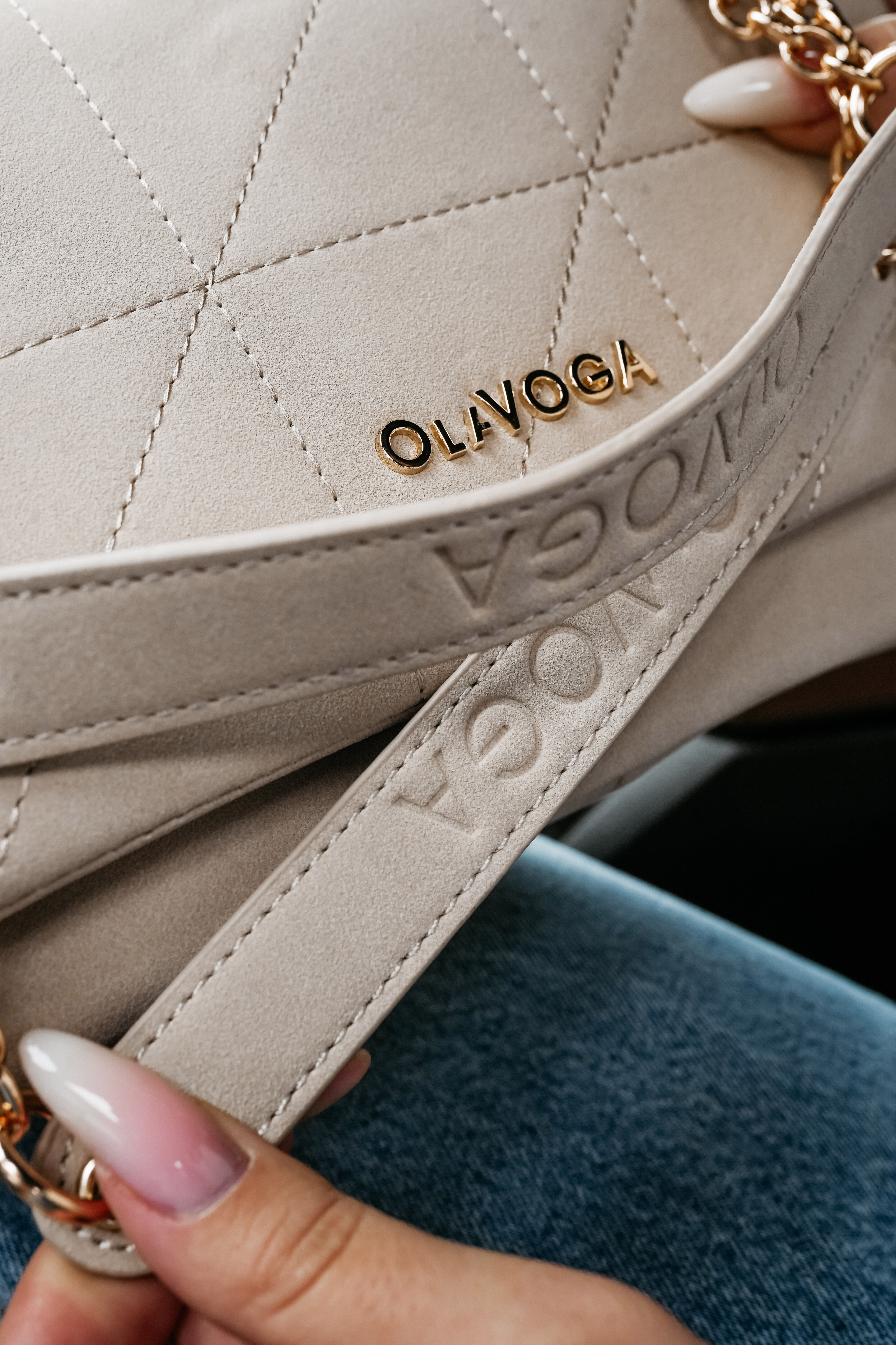Shoulder bag - pikowana tkanina - usztywniony model z klapą - złoty metalowy łańcuszek - na rączce wytłoczone logo OLAVOGA - detal z metalowym złotym logo na przodzie - magnetyczne zapięcie